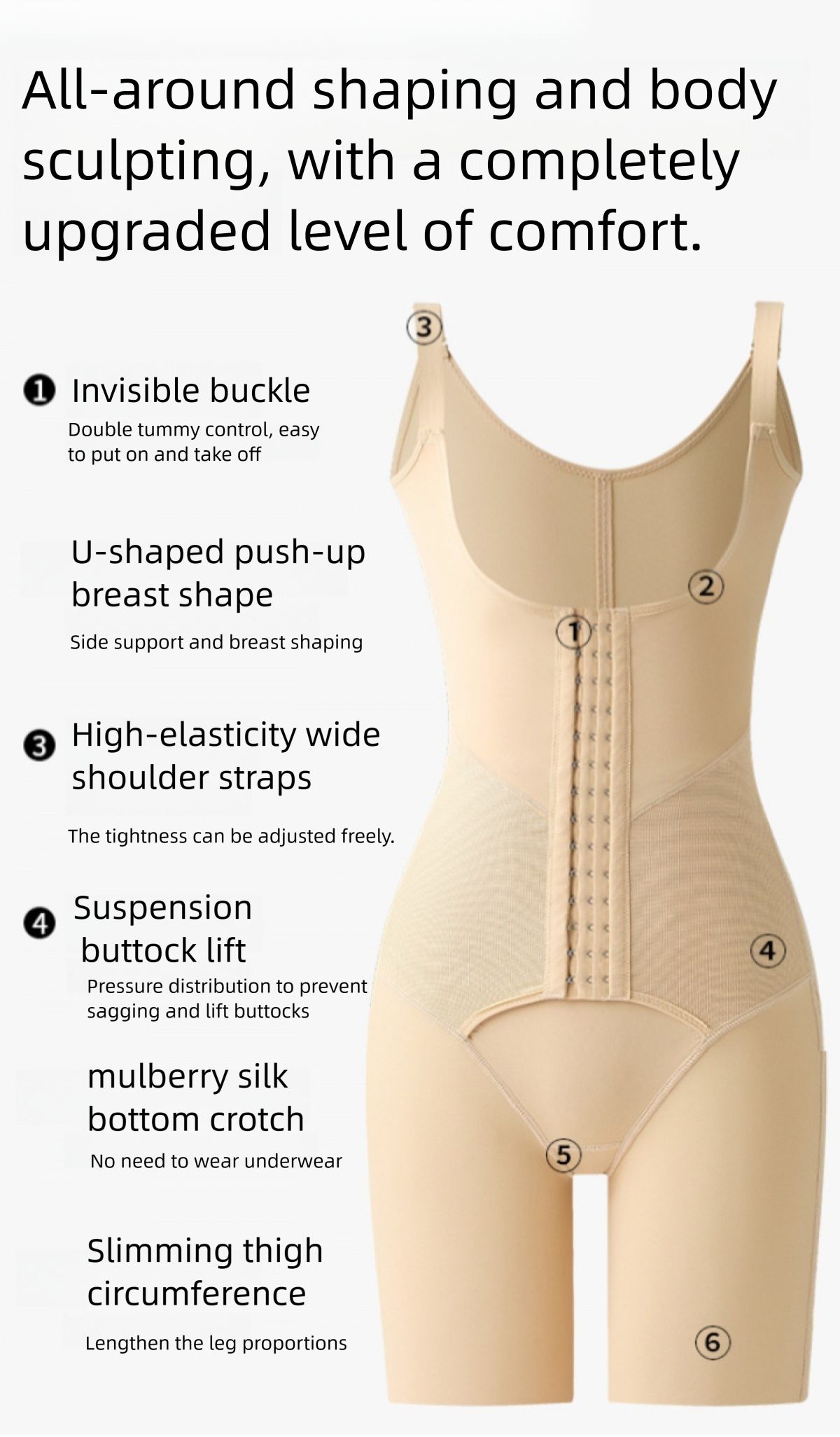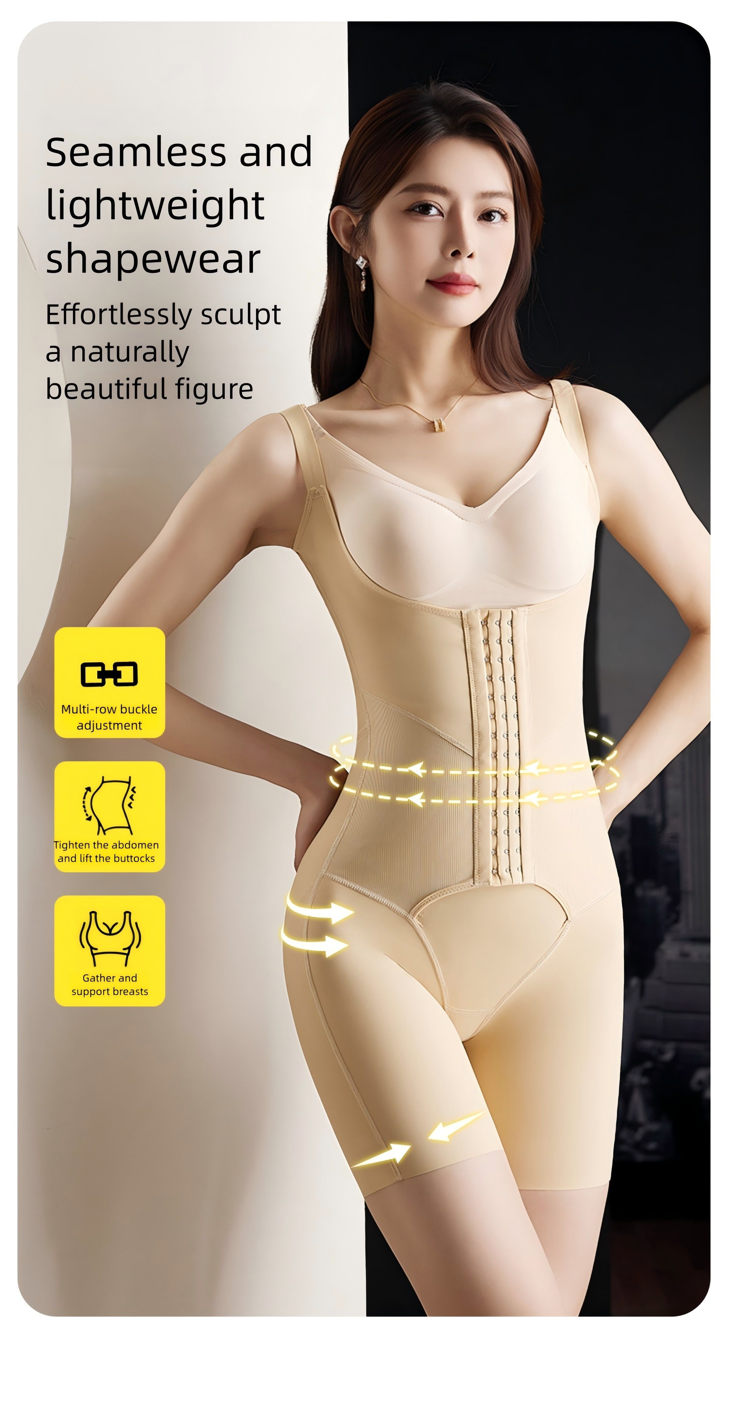 Back-opening One-piece shapewear, multi-hook and fastening for strong abdominal and waist support, women's postpartum shaping shapewear